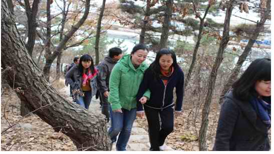 初冬时分,西尖山公园的秋景却仍未散去,布满了落叶的山间小路,充满了诗的意境,惹得老师们争相拍照。一路上,教职工们兴致勃勃,谈笑风生,精神焕发,在登山的同时欣赏着山间美丽的风景。本次登山活动促进了学院教师间的交流,增强了教师间的感情,在锻炼身体的同时,也让我院每位老师在工作之余得到了充分的休息和美的享受。