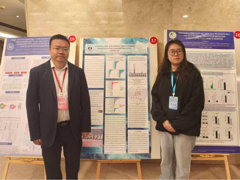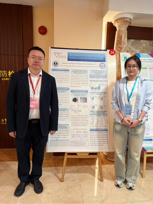 我院水生动物医学系黎睿君教授,团队研究生孙清美慧、赵书琪应邀出席本次会议。黎睿君教授围绕《Development of vaccines for fish scuticociliate》作分会场主题报告,系统阐述了该团队在鱼类寄生虫疫苗领域的最新研究进展、技术突破及应用前景,报告内容详实、见解深刻,引发了现场参会者的广泛关注与热烈讨论。研究生孙清美慧、赵书琪分别通过“Development of a parasite membrane protein vaccine for fish Scuticociliate”、“A Preliminary Study on the Regulatory Pathway of Immune Defense Enzyme IL4I1 in knockout Danio rerio by CRISPR/Cas9”主题墙报与国内外学者进行了深入交流。