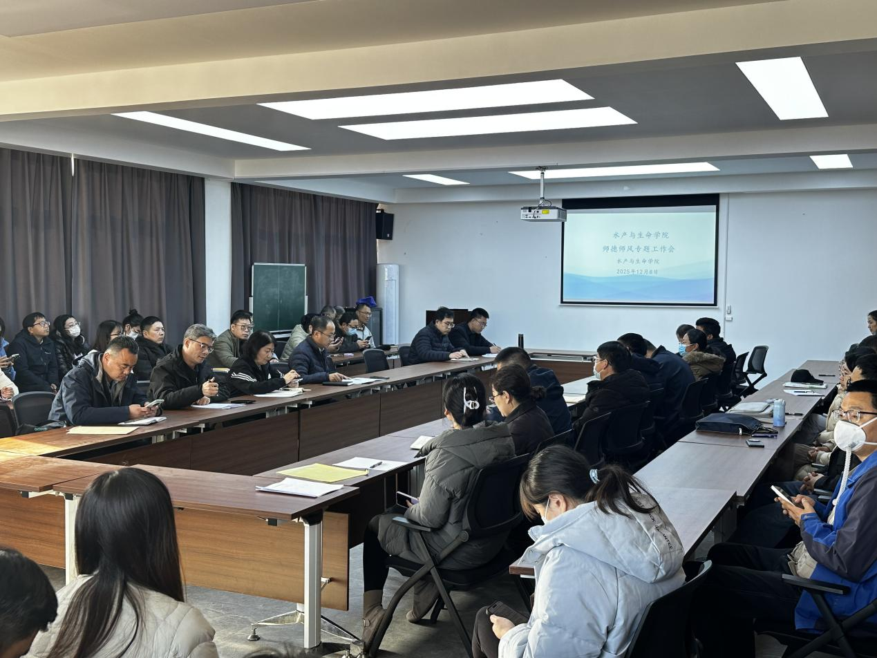 会上,学院党委书记刘宪杰带领全体教职工深入学习《大连海洋大学教师师德失范行为处理办法(试行)》等文件精神。刘宪杰结合教学、科研、学生管理等重点工作,对下一阶段师德师风建设作出具体部署,对文件中关于师德失范行为的界定、调查程序及处理措施等内容进行了详细解读。他强调,全体教师要牢固树立“师德是第一标准”的意识,严守教育教学纪律和政治规矩,自觉维护教师职业尊严,共同营造风清气正的育人环境。