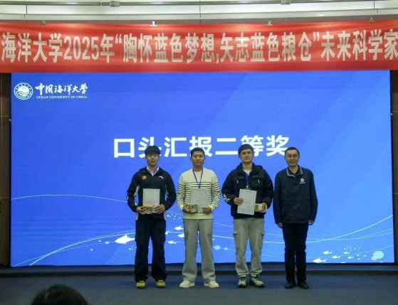 近日,中国海洋大学2025年“胸怀蓝色梦想,矢志蓝色粮仓”未来科学家论坛在青岛顺利举办。我院教师聂鸿涛教授指导的研究生高昌盛同学经过层层选拔,以作口头报告的形式参加了此次论坛,并荣获口头报告二等奖。
