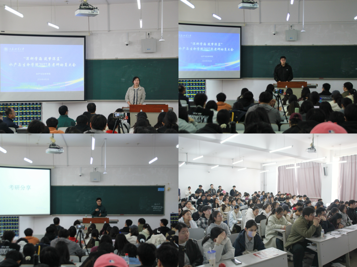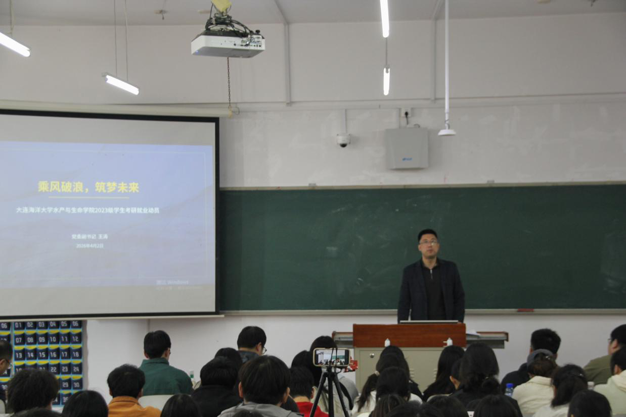 4月2日,我院在獐子岛教学楼132室召开以“深耕学海 筑梦深蓝”为主题的2027届考研、就业动员会。学院党委书记刘宪杰、党委副书记王涛出席会议。2022级考研“上岸”学生代表作经验分享,2023级全体本科生参加会议。